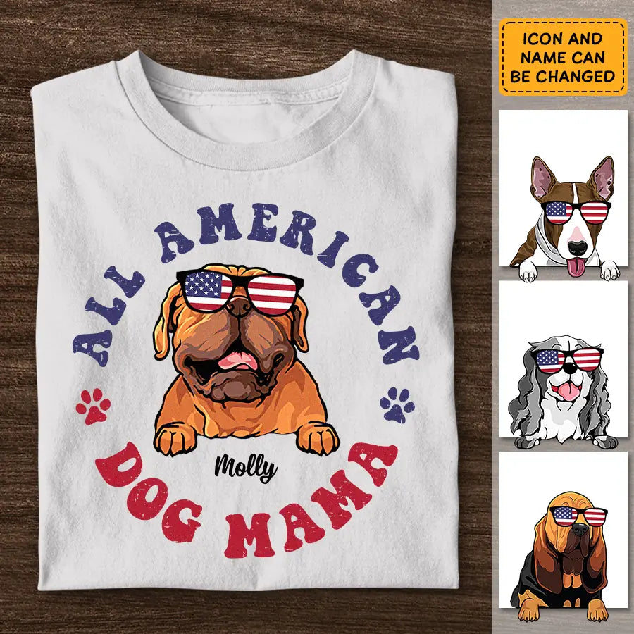 All American Dog Mama- Personalized T-Shirt - 4th July TS - PT3842