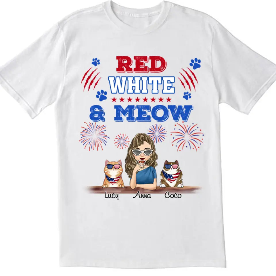 Cat Red White & Meow 4th Of July - Personalized T-shirt, Independence Day gift For Cat Mom Cat Lovers