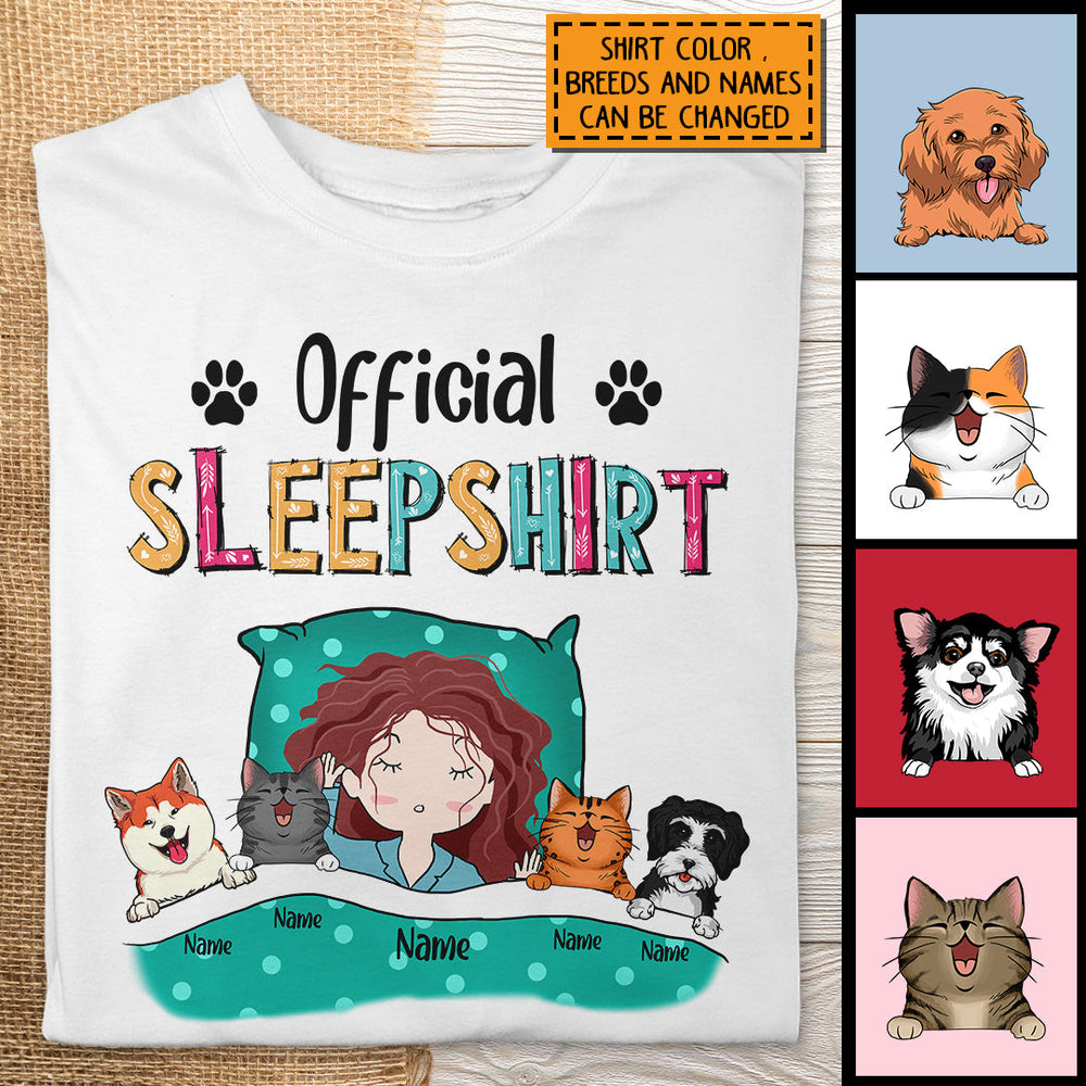 Official Sleep Shirt, Girl And Her Cats & Dogs, Personalized Dog & Cat Lovers T-shirt