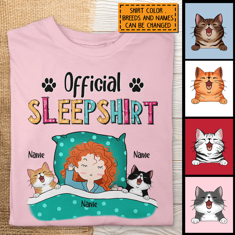 Official Sleep Shirt, Girl And Her Cats, Personalized Cat Breeds T-shirt, Gift For Cat Lovers